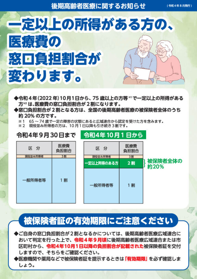 R4/9/20【(R4年10月~)後期高齢者の負担割合変更について】
