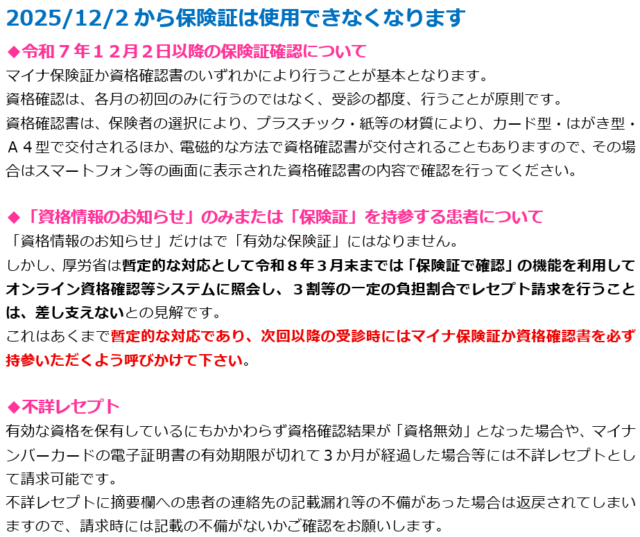 弊社ではなく「オンライン資格確認ポータルサイト」へお願いいたします。