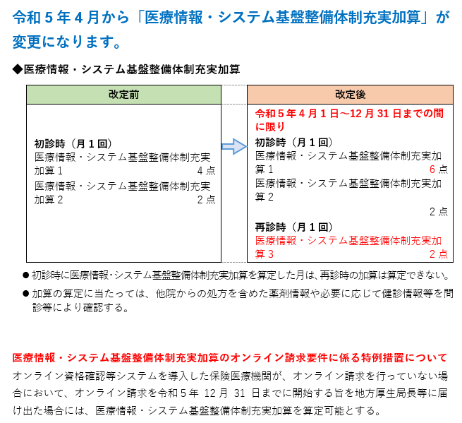 【医療情報・システム基盤整備体制充実加算の点数変更について】