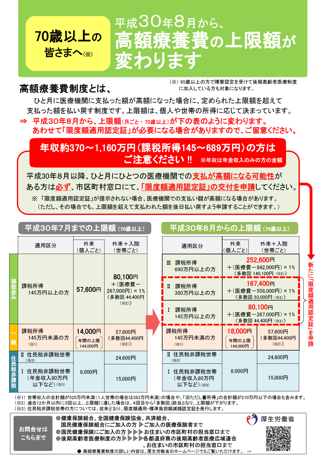 【H30年8月~ 介護負担割合と高額療養費の変更について】7月以前に